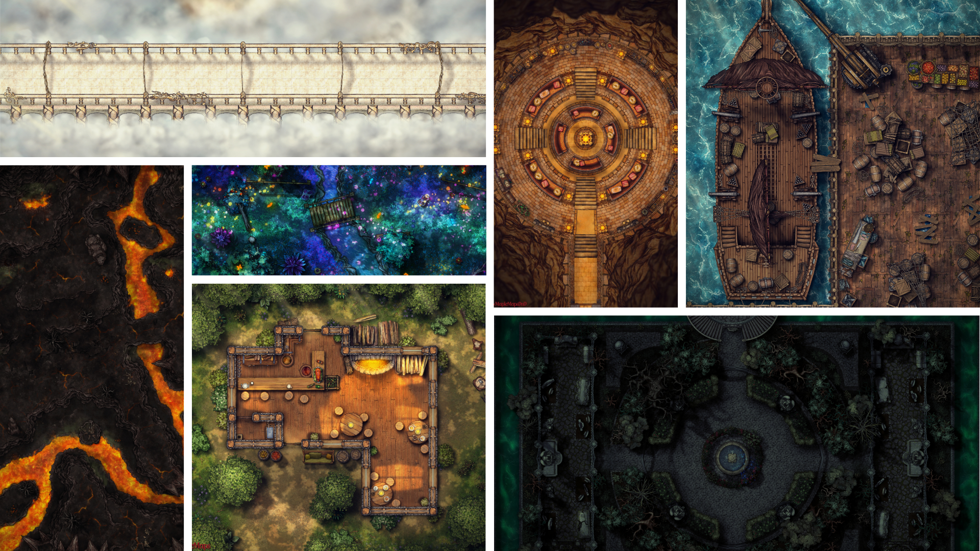 MapleMapsDnD is a D&D content creator and battle map artist. You may have seen their work in some battlemap highlight compilations on YouTube and TikTok. They focus primarily on making high quality, high-immersion maps tailored to your needs, so you can keep your players engaged.
